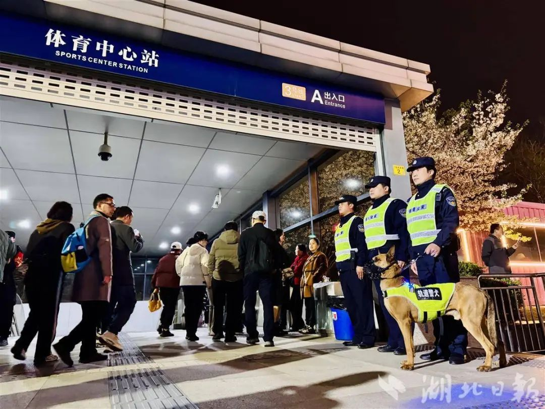 晚上10時許,隨著演唱會結束,萬人疏散大考正式開始。武漢體育中心出口同時亮起引導牌,執(zhí)勤民警用LED燈牌組成“方向指引”,將人流精準導向公交、地鐵、出租車等不同區(qū)域。