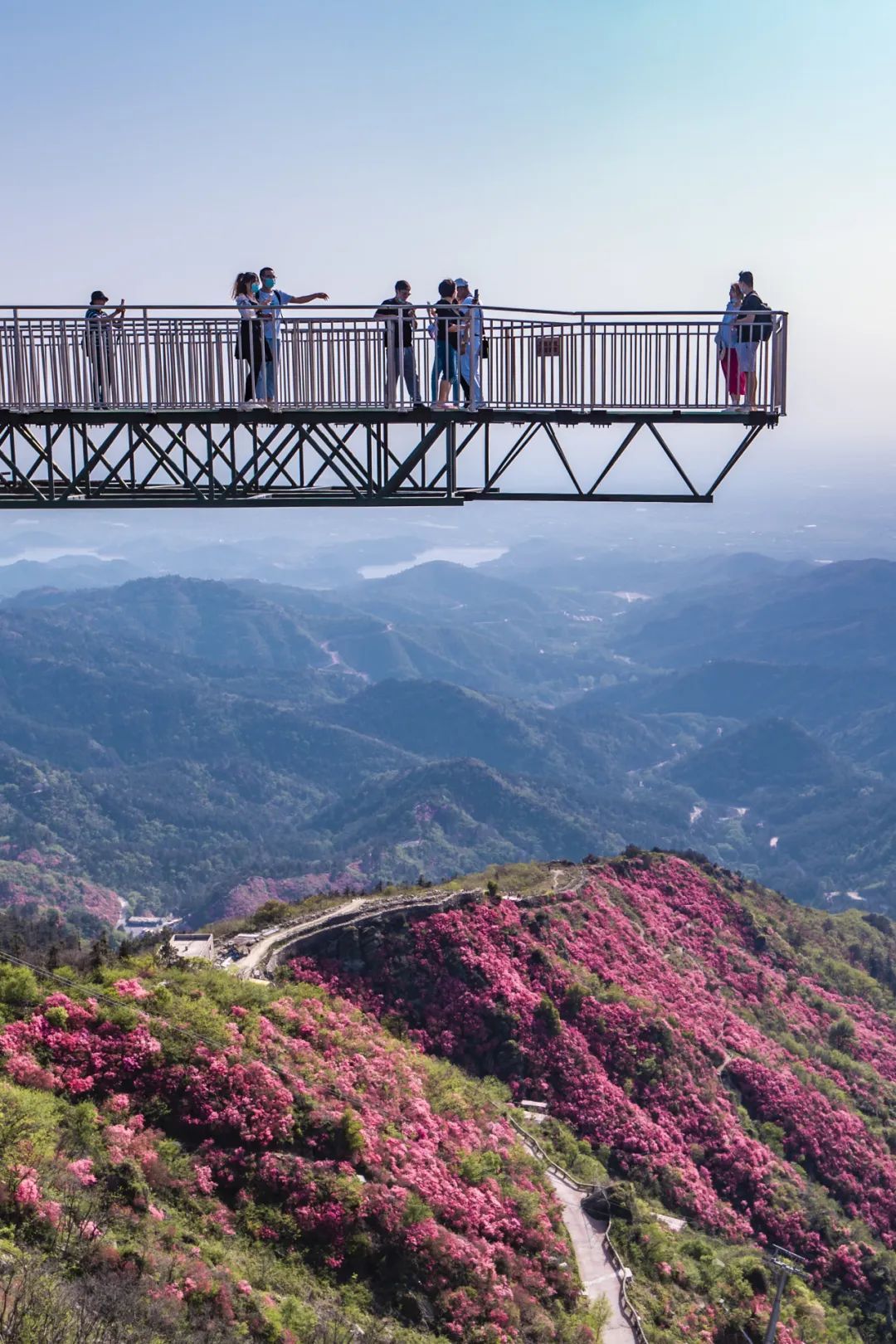 恐高慎入!向外懸挑81.9米的玻璃觀景臺一度打破吉尼斯世界紀錄,腳下是709米垂直深淵,萬畝杜鵑花海盡收眼前!敢不敢站上玻璃裂紋特效區(qū)?