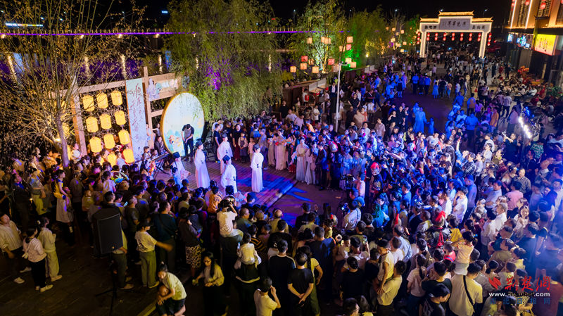 當晚,位于兩河口地段的“遇見畢昇酒吧街”火爆“開街”。原21間雙層近3000平方米臨河店面被修葺一新,英山的地標優(yōu)品、文創(chuàng)美食店內人頭攥動,古裝武士和宋服仙子與游客連線互動。該縣九昇文旅公司相關負責人介紹,新街區(qū)的投用將加速兩河口片區(qū)形成業(yè)態(tài)互補、功能互動、流線互通的循環(huán)商圈,英山群眾和來英游客可在這里體驗“吃、玩、逛、購、展、集”的一站式休閑娛樂。