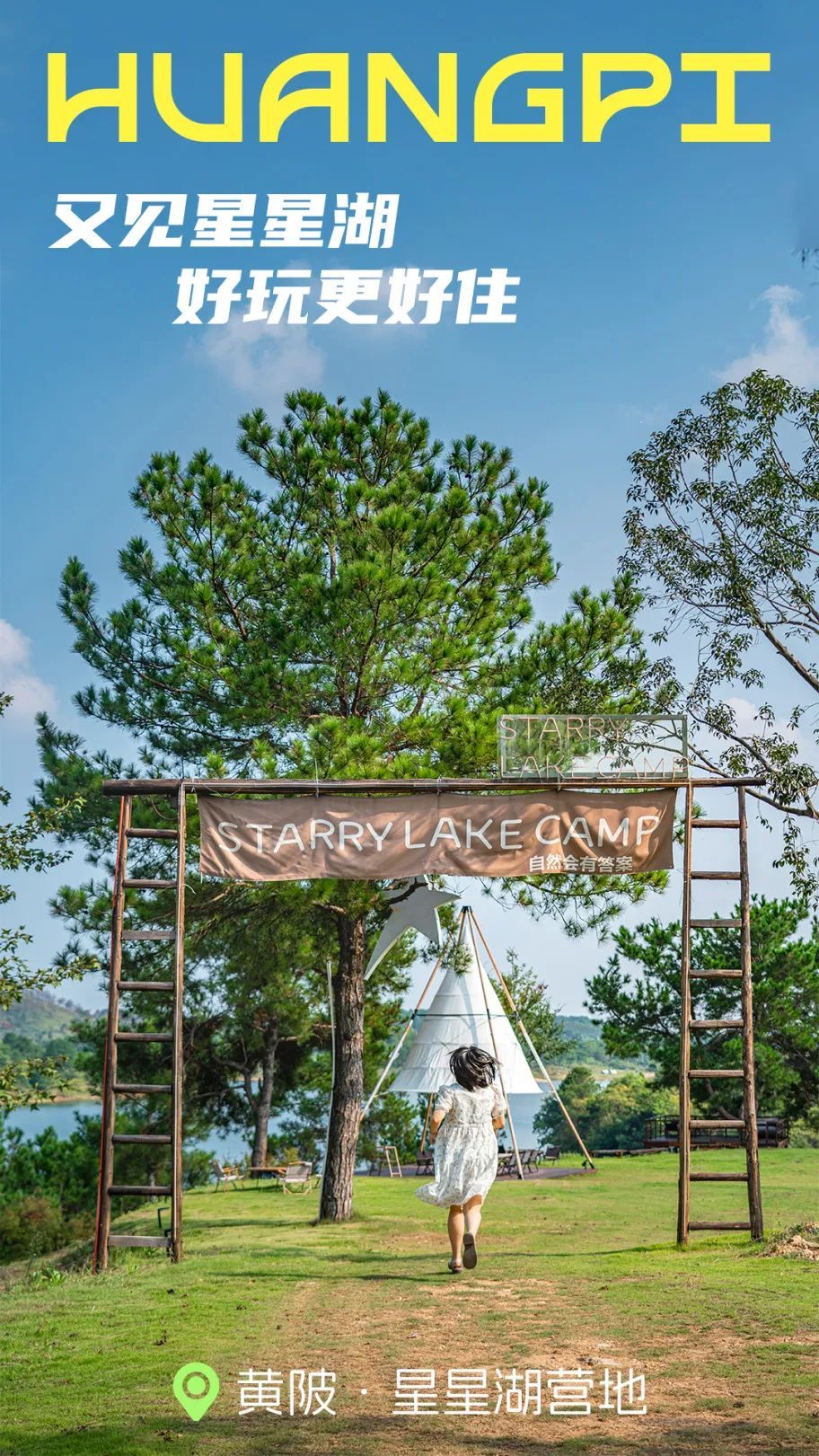 星星湖營地占地2000畝,清澈的池塘和開闊的自然景觀組成了這一處宛若仙境的景色。