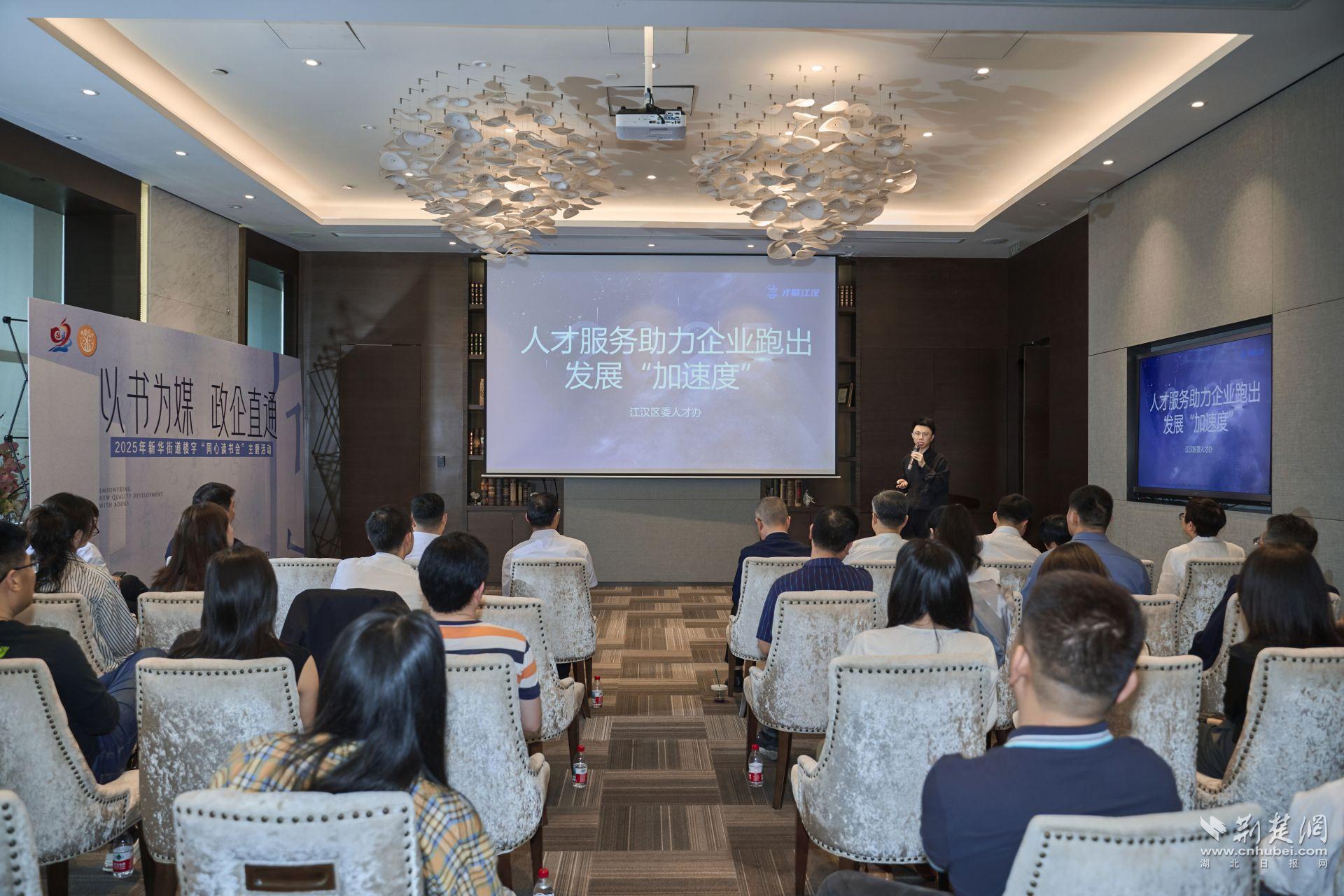 據(jù)悉,本次活動是由江漢區(qū)委統(tǒng)戰(zhàn)部、區(qū)委社會工作部指導(dǎo),新華街道黨工委主辦,旨在以經(jīng)典著作為紐帶,廣泛凝聚發(fā)展共識、強(qiáng)化政企對接、促進(jìn)資源互通,著力構(gòu)建“思想共鳴-政策共商-資源共聯(lián)-治理共擔(dān)”的樓宇發(fā)展新模式。