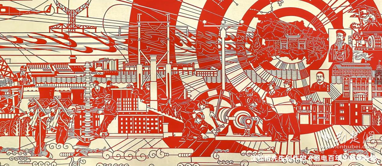 2023年,沈松柏在傳統(tǒng)剪紙手法“金紙刻制、彩紙襯色”的基礎上,通過更為精細的雕刻,創(chuàng)作出展現(xiàn)湖北電力百年發(fā)展歷程的剪紙長卷《百年鄂電 光耀荊楚》。從1893年湖北點亮的第一盞電燈到三峽水電站的建設,從特高壓變電站到新型電力系統(tǒng)建設,都在這幅6.3米的剪紙長卷上鋪陳開來?!白鳛橐幻娋W(wǎng)企業(yè)員工,通過剪紙這個載體,來表現(xiàn)電力發(fā)展、綠色電力建設一百年,我覺得非常光榮、非常自豪?!?025年,沈松柏憑借在剪紙藝術領域的深厚造詣與長期以來的突出貢獻,入選“鄂電銀輝”首批文化先鋒類人才。沈松柏表示,以刀為筆雕刻時代風貌,是非遺傳承人的使命,也是驕傲。