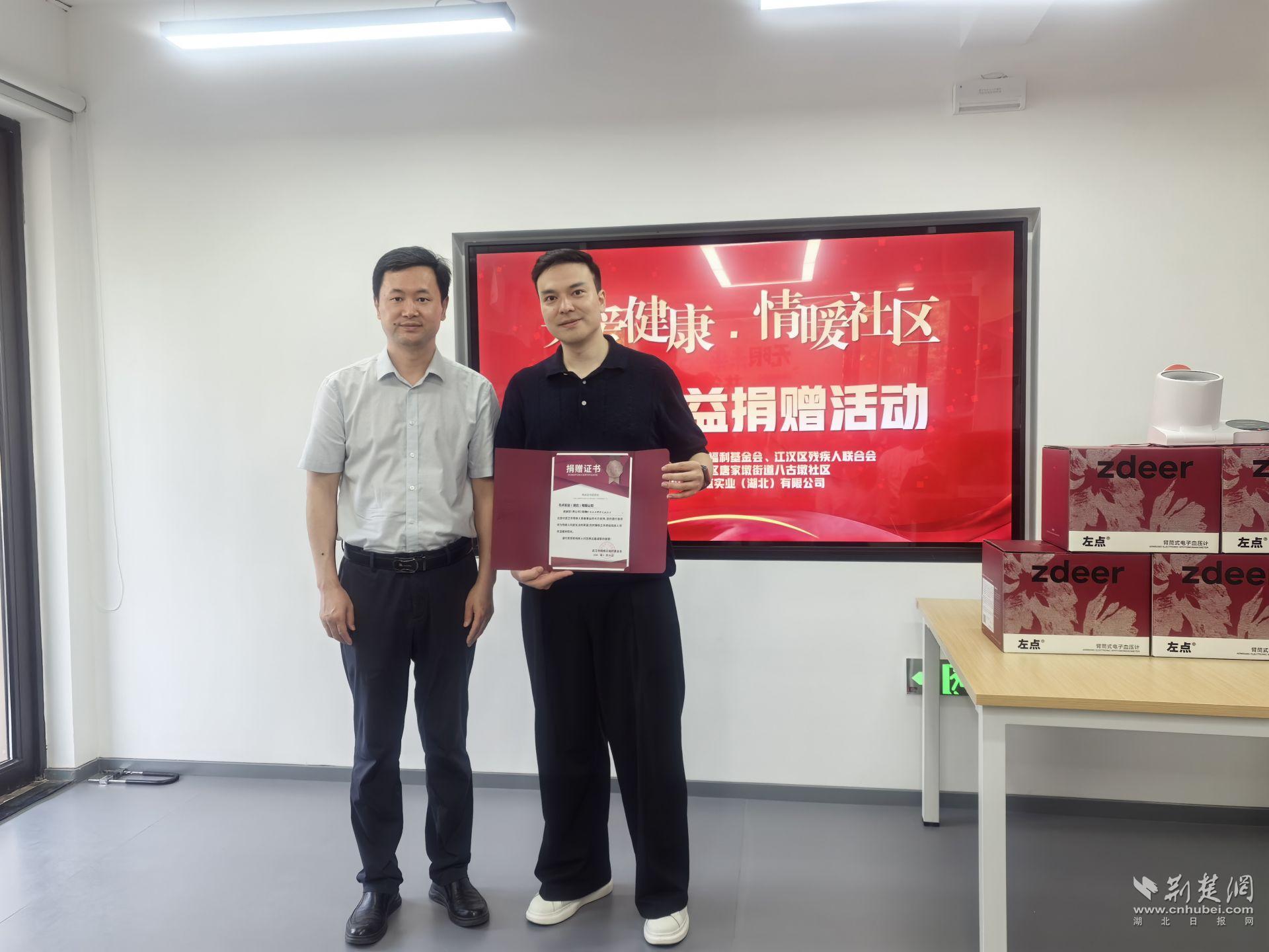 此次活動由武漢市殘疾人福利基金會(以下簡稱:市福利基金會)、江漢區(qū)殘聯(lián)主辦,左點實業(yè)(湖北)有限公司(以下簡稱:左點實業(yè))捐贈40臺血壓儀,重點面向殘疾人聚集社區(qū)、殘疾人陽光家園等,為他們送去可見、可用、可感的健康守護(hù),為其日常健康管理提供切實幫助。