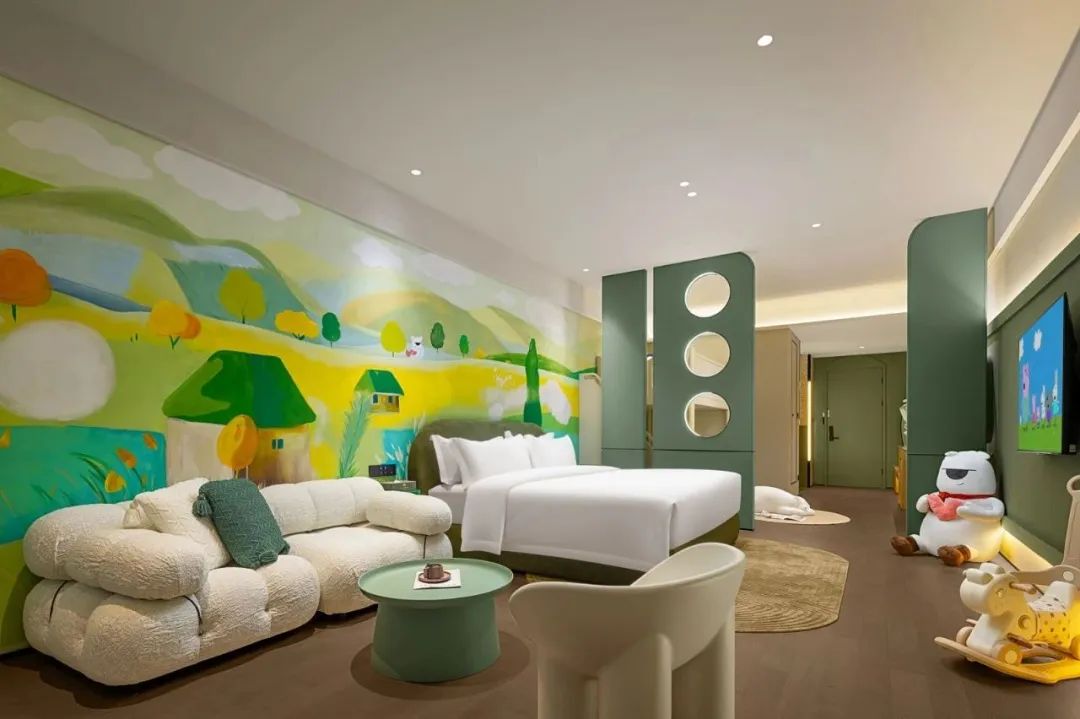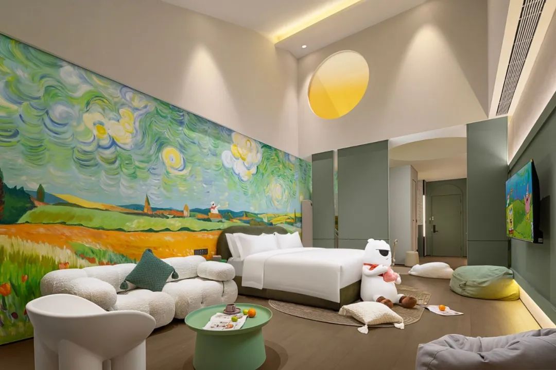 29間主題客房承包全家歡笑,從蘑菇王國到兔子先生,從綠野仙蹤到夢(mèng)樂島,每一扇門后都藏著無盡的驚喜與想象。客房均精心打造專屬童趣壁畫,仿佛住進(jìn)絢爛多彩的童話世界。