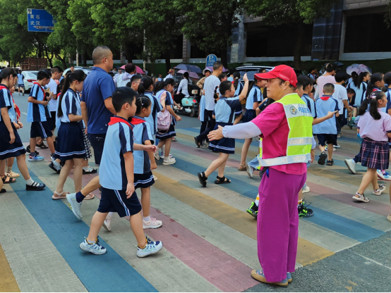 5月28日,烈日當(dāng)空,大冶濱湖學(xué)校門口,隨著宋慶莉的手勢(shì),汽車長龍緩緩?fù)O?。斑馬線前,一隊(duì)學(xué)生有序過馬路。