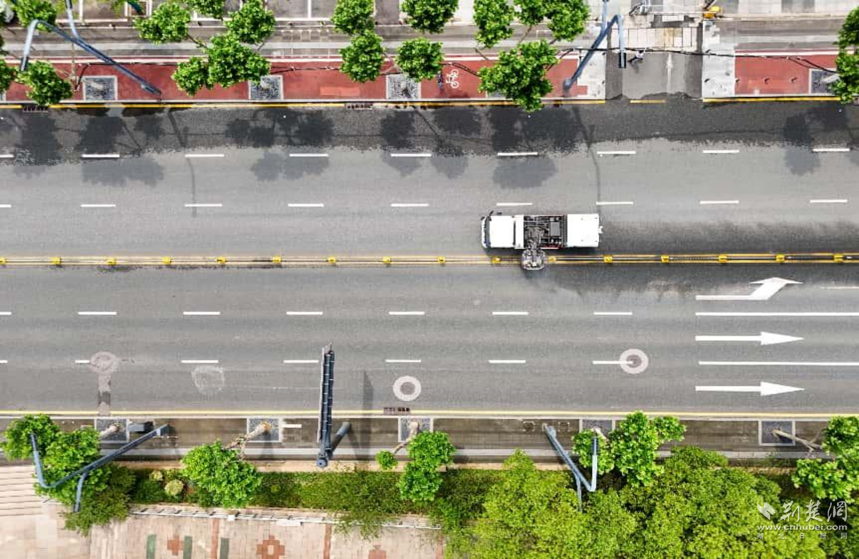 荊楚網(wǎng)(湖北日?qǐng)?bào)網(wǎng))訊(記者 何婧 通訊員 費(fèi)帆 白丹 覃小玲)6月12日,武昌區(qū)臨江大道,記者在長江觀景第一臺(tái)旁看到,新能源護(hù)欄清洗車緩緩駛過,隨著機(jī)械刷頭滾動(dòng),水霧噴灑而下,不僅護(hù)欄潔白如初,連地面上的黃線也一并沖刷干凈。這樣的場景,如今在臨江大道已經(jīng)成為日常。