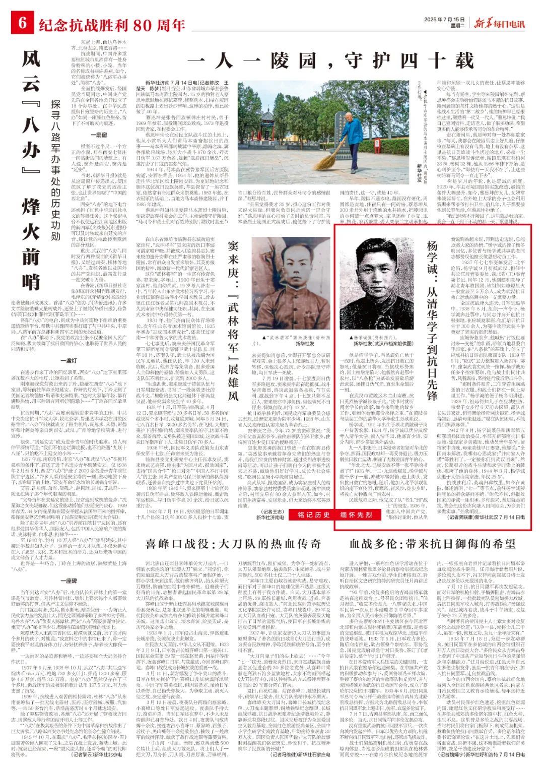 抗戰(zhàn)勝利后,英魂歸葬故里。如今在黃陂,每逢清明、“七一”等節(jié)點,前往楊學(xué)誠陵園憑吊的群眾絡(luò)繹不絕。“時代不同,但報效國家的赤誠一脈相承。鄉(xiāng)村振興,基層就是前線,我會把這份志向融入田間地頭,為鄉(xiāng)親們多做實事。”孫欣頔說。
