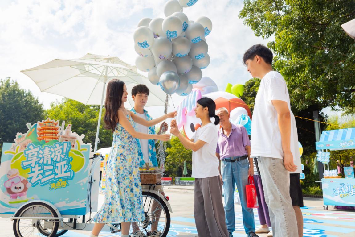 這場(chǎng)熱辣與清涼的碰撞,早已在線上埋下伏筆。此前數(shù)日,武漢各核心商圈的大屏上,三亞的碧海藍(lán)天化作“賽博涼風(fēng)”動(dòng)畫,引發(fā)網(wǎng)友熱議“武漢人蹭三亞空調(diào)真的涼到了”。線上預(yù)熱與線下派送的緊密結(jié)合,讓三亞的舒適印象深入人心。“武漢東湖一秒入海cos三亞”等話題登頂兩地?zé)崴寻?,在市民心中種下一片蔚藍(lán)的“心之所向”,也讓三亞暑期“避暑勝地”的概念深入人心。一顆來(lái)自熱帶的椰子,穩(wěn)穩(wěn)落入了華中、西南城市的煙火人間。
