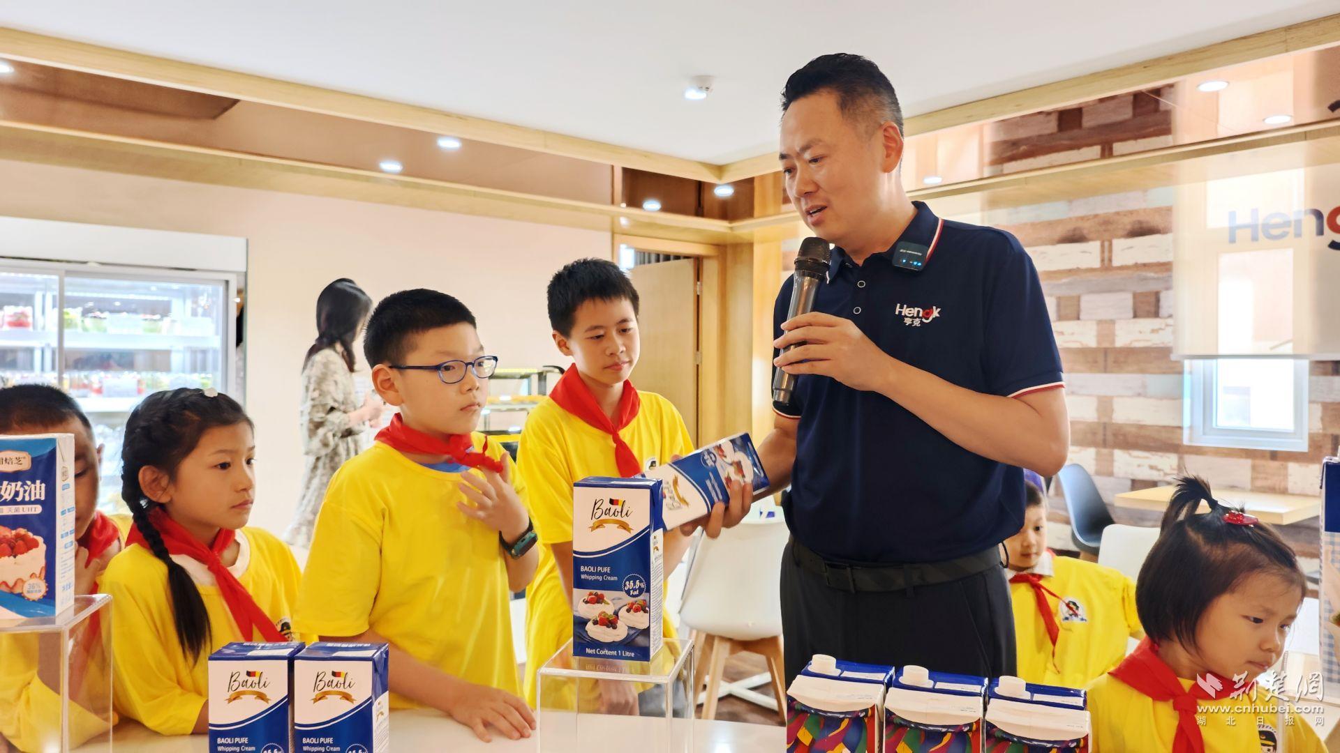 “亨克的稀奶油常見(jiàn)于蛋糕、甜品、冰激凌、奶茶以及西餐調(diào)湯等諸多美食中。其主要原料是從生牛乳中分離出來(lái)的乳脂肪,經(jīng)過(guò)先進(jìn)的生產(chǎn)工藝加工而成。稀奶油需在 2 - 6度的環(huán)境下儲(chǔ)存,以保證品質(zhì)?!蔽錆h亨克工作人員向孩子們講解道。