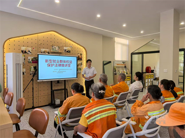 法律小課堂上,律師劉銳用情景劇還原“中暑取消訂單被扣款”的常見糾紛,瞬間抓住眾人注意力。他結(jié)合《防暑降溫措施管理辦法》第14條,把“高溫作業(yè)權(quán)益保障”“維權(quán)流程”等法條拆成大白話,還設(shè)置快問快答環(huán)節(jié),細(xì)致解答工資結(jié)算、工傷認(rèn)定等疑問。工會(huì)小組同步開通應(yīng)急維權(quán)通道,將法律咨詢鏈接至工會(huì)二維碼,方便勞動(dòng)者隨時(shí)求助?!耙郧坝龅郊m紛怕麻煩,現(xiàn)在不僅清楚有哪些權(quán)益,還清楚了維權(quán)途徑,心里更有底了?!蓖赓u員王師傅掃碼關(guān)注后說道。
