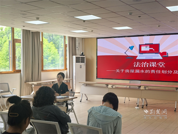 南湖街道依托綜治中心平臺,組織人大代表、政協(xié)委員、“法律明白人”、物業(yè)服務公司工作人員、社區(qū)居民等旁聽一起典型的房屋漏水案。原告為南湖街道松濤苑小區(qū)的頂樓業(yè)主,被告為該小區(qū)物業(yè)服務公司。今年5月,武漢遭遇特大暴雨,業(yè)主因屋頂排水堵塞導致雨水反灌并逐層滲透至樓下,訴請物業(yè)公司賠償損失并履行檢修義務。法官圍繞物業(yè)公司是否盡到管理維護職責、過錯與損害之間的因果關系等焦點進行審理,為旁聽人員呈現了一堂直觀的“法治公開課”。