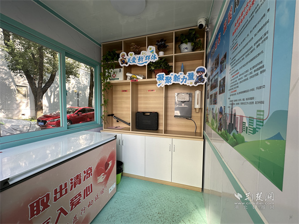 社區(qū)在北大門(mén)入口處設(shè)立的“暖心補(bǔ)給站”,成了小哥們的“能量加油站”。拉開(kāi)補(bǔ)給站的冰柜,冰爽的礦泉水整齊擺放;醫(yī)藥箱里,創(chuàng)可貼、碘伏、藿香正氣水等應(yīng)急藥品一應(yīng)俱全;維修工具箱和電動(dòng)打氣筒已幫十多位小哥解決過(guò)電動(dòng)車(chē)爆胎、零件松動(dòng)的難題;打包袋也方便了小哥臨時(shí)更換破損外賣(mài)包裝?!跋奶焖屯瓴?,來(lái)這兒取瓶冰水,渾身的燥熱都散了,心里也涼快!”快遞小哥王師傅邊說(shuō)邊拿起一瓶水,臉上滿是滿足。