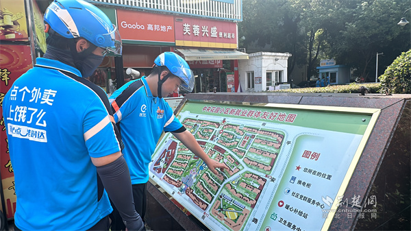 外賣(mài)員查看全景圖立牌。 通訊員供圖