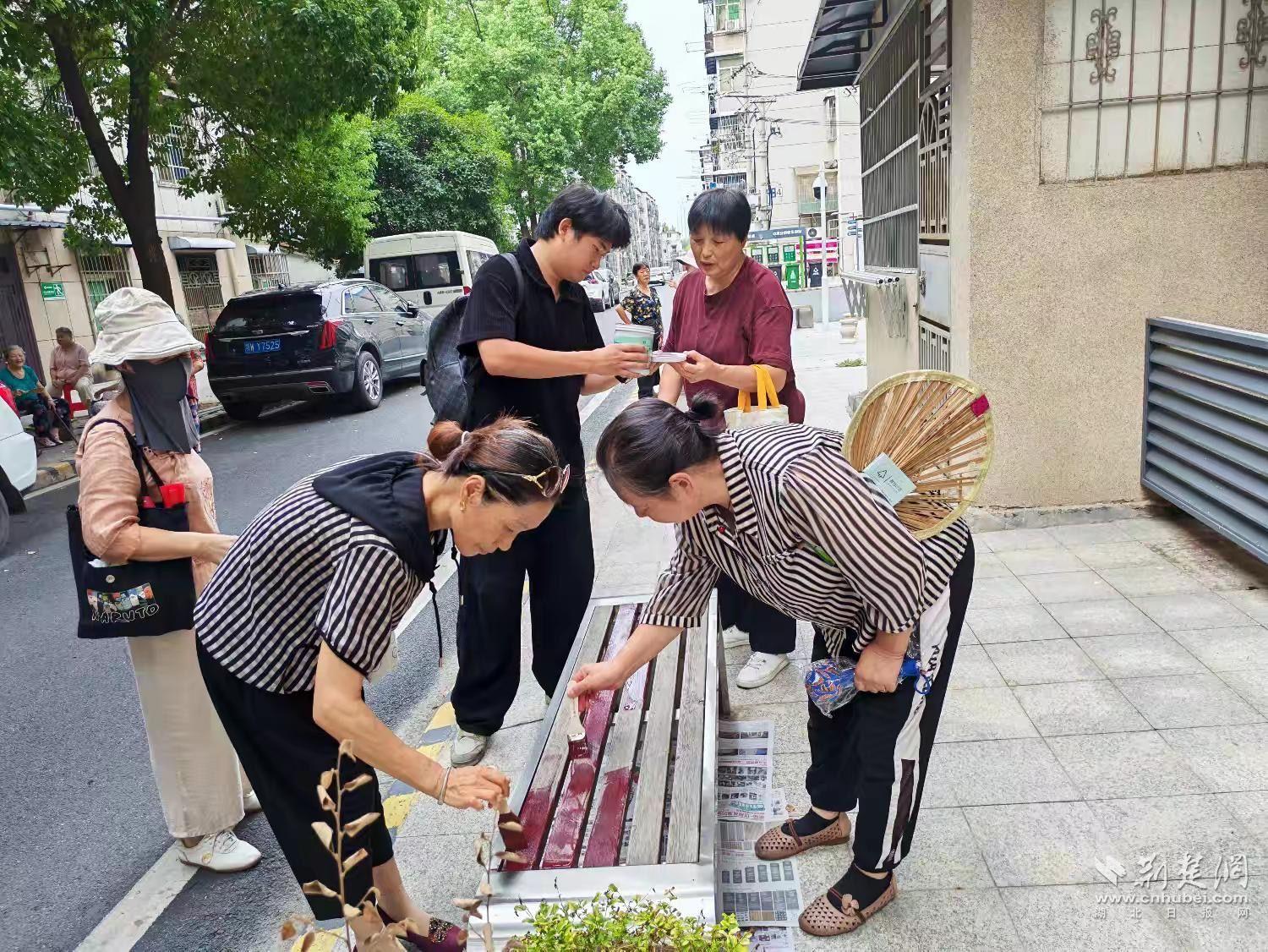 隨后,居民們?cè)诙綄?dǎo)員和社區(qū)工作人員帶領(lǐng)下走進(jìn)19棟小廣場(chǎng),開展“睦鄰花廊”老舊桌椅翻新環(huán)節(jié)。大家齊心協(xié)力,刷漆、上色,讓11張因風(fēng)雨侵蝕而斑駁的休閑長(zhǎng)椅煥然一新——其中3張漆成老紅色,8張披上繽紛彩裝。一個(gè)多小時(shí)后,廣場(chǎng)煥發(fā)新貌,成為居民休閑的新亮點(diǎn)。