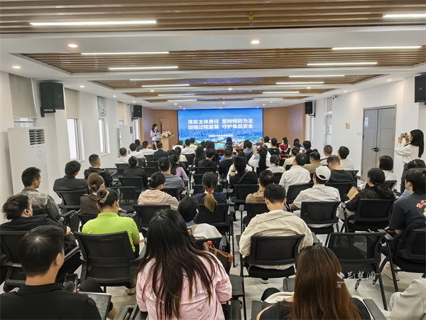 隨后,武昌區(qū)市場(chǎng)監(jiān)督管理局劉茜結(jié)合自身職責(zé),從食材溯源的細(xì)節(jié)規(guī)范到應(yīng)急處置的實(shí)操技巧,逐一剖析食品運(yùn)營(yíng)的“安全命脈”。她特別提醒商戶(hù),食品安全任何一個(gè)環(huán)節(jié)的疏忽都可能引發(fā)安全事故,導(dǎo)致糾紛隱患、消費(fèi)者索賠、行政處罰甚至吊銷(xiāo)經(jīng)營(yíng)許可等嚴(yán)重后果,強(qiáng)調(diào)商戶(hù)要落實(shí)主體責(zé)任,堅(jiān)持預(yù)防為主,加強(qiáng)過(guò)程監(jiān)督,共同守護(hù)食品安全。