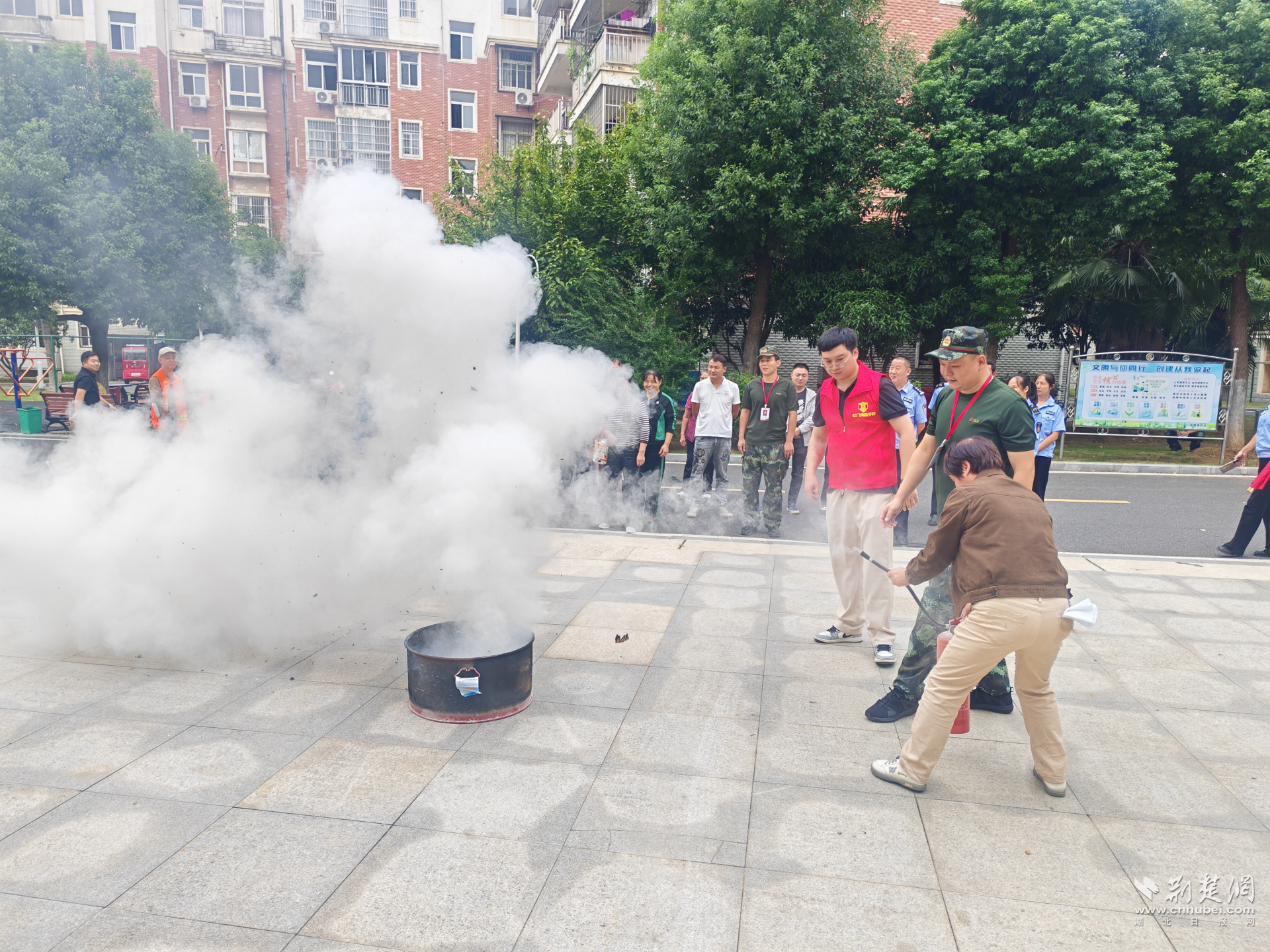為了檢驗(yàn)學(xué)習(xí)成果,現(xiàn)場還模擬了煙霧彈火災(zāi)現(xiàn)場,所有參訓(xùn)人員用濕毛巾捂住口鼻,低頭彎腰有序開展逃生,“手把手”指導(dǎo)人員正確逃生安全區(qū)域,保證全員“會(huì)逃、會(huì)防”。同時(shí),社區(qū)同步開展安全救援演練,手把手教學(xué)滅火器、消防栓使用方法,讓參與者從“懂知識(shí)”升級(jí)為“會(huì)操作”,提升社區(qū)應(yīng)急處置能力。