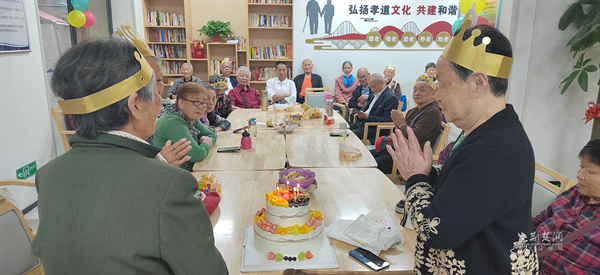 9月25日,社區(qū)頤養(yǎng)中心內(nèi)歡聲笑語、暖意融融,一場“溫情歲月,共享生辰”季度長者生日會(huì)在此舉行。社區(qū)“鶴耋安”高齡獨(dú)居老人與老年居民齊聚一堂,共度歡樂時(shí)光。