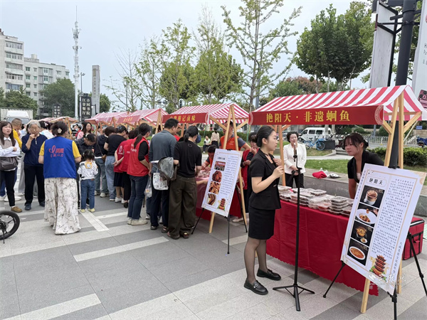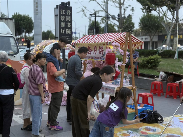 活動(dòng)現(xiàn)場設(shè)置市集區(qū)與演藝區(qū)兩大板塊。市集區(qū)內(nèi)人頭攢動(dòng),轄區(qū)共建單位、音樂企業(yè)與多家商戶積極參與,匯聚特色商品與音樂互動(dòng)體驗(yàn)。大音琴行展出多種樂器并銷售音樂周邊產(chǎn)品,吸引眾多武漢音樂學(xué)院學(xué)生及音樂愛好者駐足交流;元祖食品推出月餅、點(diǎn)心等節(jié)令糕點(diǎn)展銷,為中秋佳節(jié)提前預(yù)熱;艷陽天·非遺鮰魚(黃鶴樓店)、中百倉儲(chǔ)、九州上醫(yī)館及多家大成路特色美食商戶也紛紛設(shè)點(diǎn),讓市民在觀賞演出之余,盡享購物與美食樂趣。