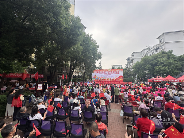 活動中,文藝表演與互動環(huán)節(jié)穿插進(jìn)行,帥鼓《歌唱祖國》、民樂《地道戰(zhàn)》、黃梅戲《再唱山歌給黨聽》輪番上演。當(dāng)54平方米的巨幅國旗緩緩展開,居民們揮舞小國旗齊唱贊歌,手中的紙飛機(jī)帶著美好祝愿飛向夜空,電子煙花綻放的瞬間,現(xiàn)場氣氛達(dá)到高潮。此外,三輪抽獎(jiǎng)、“最受歡迎菜品”評選等環(huán)節(jié),更讓活動充滿驚喜與趣味。