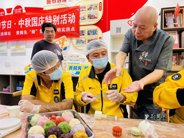 巧手制餅話團(tuán)圓?!靶「缭嘛炇肿鞣弧杯h(huán)節(jié),在武昌區(qū)“新興學(xué)院”教學(xué)點(diǎn)、文昌高級(jí)職業(yè)學(xué)校西點(diǎn)老師的指導(dǎo)下,大家動(dòng)手制作印有“中秋”“黃鶴樓”“黃鶴樓下是我家”等字樣的專(zhuān)屬月餅。制作完成后,大家手捧作品在主題背景板前拍照留念,大家親手制作印有“中秋”“黃鶴樓”“黃鶴樓下是我家”等字樣的特色月餅。制作完成后,參與者手捧作品在主題背景板前合影,驛站提供的即時(shí)打印服務(wù)讓這份團(tuán)圓記憶即刻成真,溫暖留存。