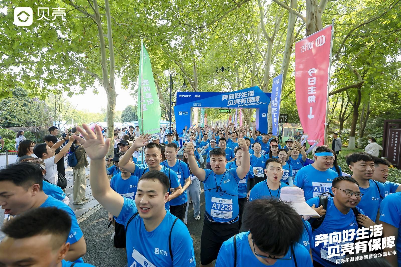 秋高氣爽,湖光為證。10月11日下午,武漢東湖迎來金秋第一跑,“奔向好生活 貝殼有保障——2025武漢貝殼健康跑”歡樂開跑,來自各行各業(yè)的近千名跑友,享受跑步的樂趣,感受武漢秋日浪漫。