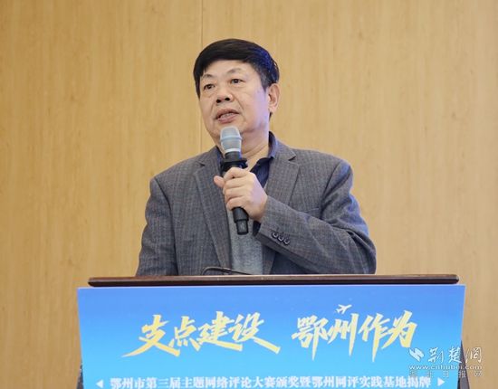頒獎活動現(xiàn)場,湖北省社會科學(xué)院原副院長、省政府咨詢委員、長江經(jīng)濟(jì)帶智庫聯(lián)盟秘書長秦尊文受邀出席,并從網(wǎng)評的角度,圍繞“弘揚(yáng)花湖精神 助力支點(diǎn)建設(shè)”主題,發(fā)表了主旨演講。他結(jié)合最新公布的《中共中央關(guān)于制定國民經(jīng)濟(jì)和社會發(fā)展第十五個五年規(guī)劃的建議》,高屋建瓴分析了鄂州當(dāng)前的經(jīng)濟(jì)形勢,提出了切實(shí)可行的建議。湖北省委直屬機(jī)關(guān)工委干部馮歡以中央網(wǎng)信辦網(wǎng)絡(luò)評論“創(chuàng)四優(yōu)”競賽獲獎作者身份,分享了自己多年網(wǎng)評文章寫作的心得體會,風(fēng)趣幽默、干貨滿滿。