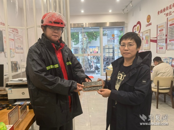 當(dāng)日下午,陳智在執(zhí)行配送任務(wù)時(shí),于路邊發(fā)現(xiàn)一遺失錢包,內(nèi)有現(xiàn)金、身份證、銀行卡等重要物品??紤]到失主必定心急如焚,他立即暫停配送工作,將錢包送至就近的黃鶴樓街道新就業(yè)群體服務(wù)驛站,希望通過驛站平臺(tái)盡快物歸原主。