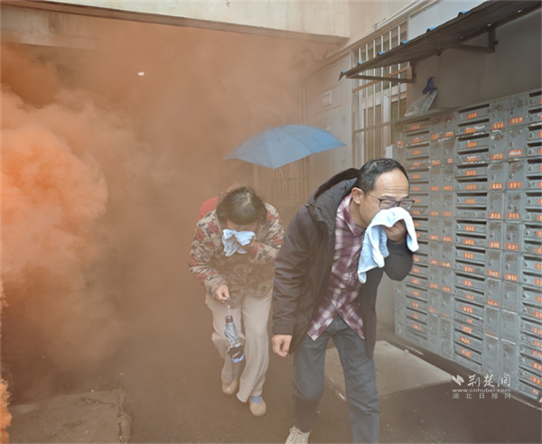 隨后,6棟居民樓模擬火災(zāi)疏散演練啟動(dòng)。“煙霧彈點(diǎn)燃!滅火組壓制初期火源,疏散組組織撤離!”指令下達(dá)后,滅火組迅速攜帶器材沖進(jìn)樓道撲救模擬起火點(diǎn);疏散組手持熒光指揮棒,在樓層樓梯口、轉(zhuǎn)角處布控,引導(dǎo)居民彎腰捂鼻、有序撤離。
