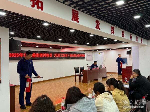街道還邀請黃鶴樓消防救援站開展“消防法與消防實操”培訓,詳細解讀《消防法》相關條款,現場演示滅火器使用、初期火災撲救等技能,通過分組實操訓練,切實增強網格員消防安全隱患排查和應急處置能力。