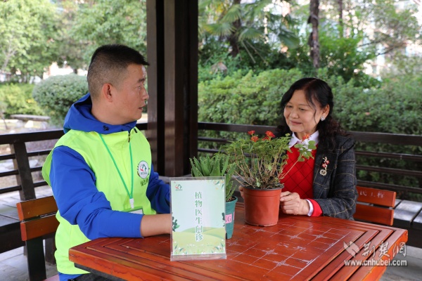 江漢區(qū)民權(quán)街道打銅社區(qū)園藝師辛高爐分享植物養(yǎng)護(hù)經(jīng)驗。 通訊員供圖