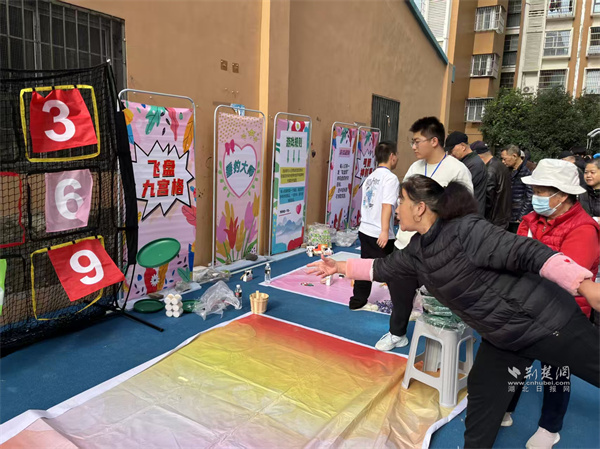 游戲項(xiàng)目互動(dòng)區(qū)同樣精彩紛呈。圍繞“趣玩”屬性,設(shè)置了弓箭神射手、飛盤九宮格、垂釣大師等多款游玩項(xiàng)目,為居民們搭建起輕松愜意的交流平臺(tái)。大家在游玩中放松身心,主動(dòng)分享興趣心得,不同團(tuán)體間的壁壘被打破,現(xiàn)場(chǎng)歡聲笑語不斷。