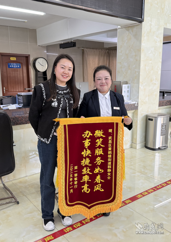 荊楚網(wǎng)(湖北日報網(wǎng))訊(通訊員劉麗)近日,武昌區(qū)黃鶴樓街道便民服務(wù)中心工商窗口上演了暖心一幕。一位商戶代表將一面書寫著“微笑服務(wù)如春風(fēng),辦事快捷效率高”的錦旗,鄭重送到工作人員郭靜手中,對她即使在生病住院期間仍堅持線上為商戶排憂解難的敬業(yè)精神表達(dá)誠摯謝意。