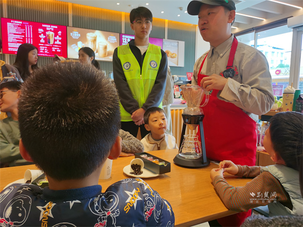 活動現(xiàn)場,星巴克專業(yè)咖啡師從咖啡豆的產(chǎn)地故事、烘焙原理,到手沖咖啡的水溫控制、拉花技巧,都逐一細(xì)致講解。在手沖實(shí)踐環(huán)節(jié),孩子們在咖啡師指導(dǎo)下學(xué)習(xí)中心畫圈注水的方法,專注完成兩分半的沖煮流程??Х葞熯€從風(fēng)味平衡、操作規(guī)范、創(chuàng)意呈現(xiàn)三個方面進(jìn)行點(diǎn)評,讓孩子們在實(shí)踐中感受職業(yè)的嚴(yán)謹(jǐn)。