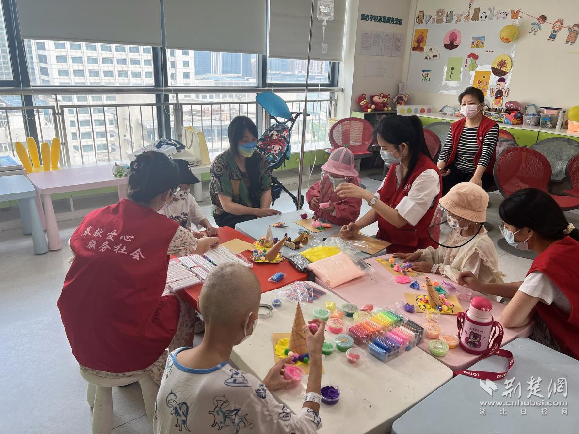 這種落差,也是“童也青年教師美育志愿服務(wù)隊(duì)”在成立之初的第一道關(guān)卡。2024年6月,團(tuán)隊(duì)因美育特色被專業(yè)社工、江漢區(qū)婦聯(lián)執(zhí)委陳玥關(guān)注到,隨后與協(xié)和醫(yī)院兒童血液科完成需求對(duì)接,美育課程正式落地。