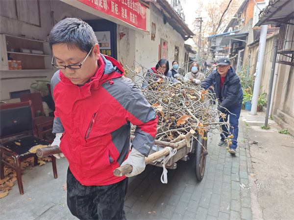 清掃工作隨即展開,社區(qū)工作人員、城管隊員與居民志愿者分組協(xié)作,逐院逐角推進(jìn)清理。經(jīng)過三天連續(xù)奮戰(zhàn),累計清運枯枝落葉近十車,徹底清除了堆積數(shù)月的安全隱患,院內(nèi)公共空間重現(xiàn)整潔通暢。