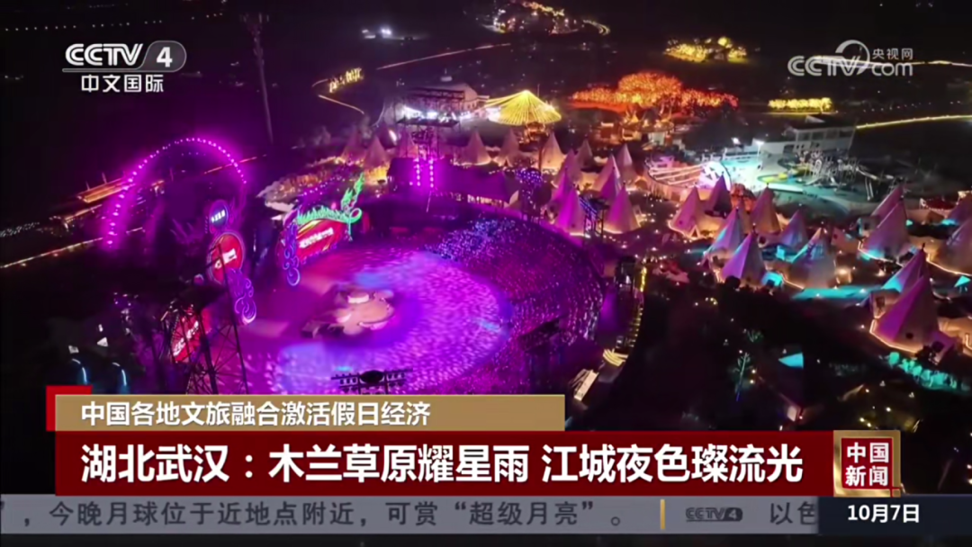 10月7日:CCTV-4《中國新聞》聚焦報(bào)道黃陂木蘭草原文旅融合激活假日經(jīng)濟(jì):木蘭草原耀星雨,江城夜色璨流光。