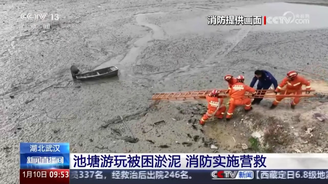 1月10日:CCTV-13《新聞直播間》報(bào)道黃陂消防救援大隊(duì)對池塘游玩被困淤泥者實(shí)施營救。