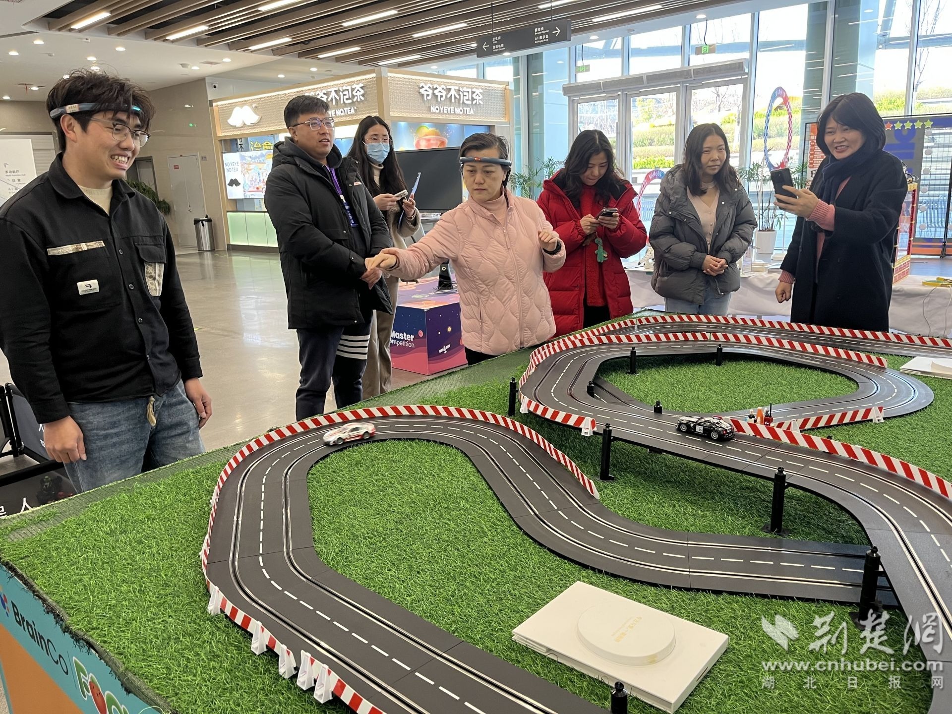 在工作人員的引導下,大家依次體驗了多項科技互動項目。在智控機器狗展示區(qū),黨員們親手操作機器狗,近距離感受其靈活動作與智能響應能力;腦控賽車體驗區(qū),大家?guī)夏X機智能頭環(huán),集中精神推動小車前進,感受“意念控制”的科技魅力;VR重走長征路體驗中,黨員們佩戴設備后“置身”長征途中,沉浸式體驗革命先輩的奮斗歷程。