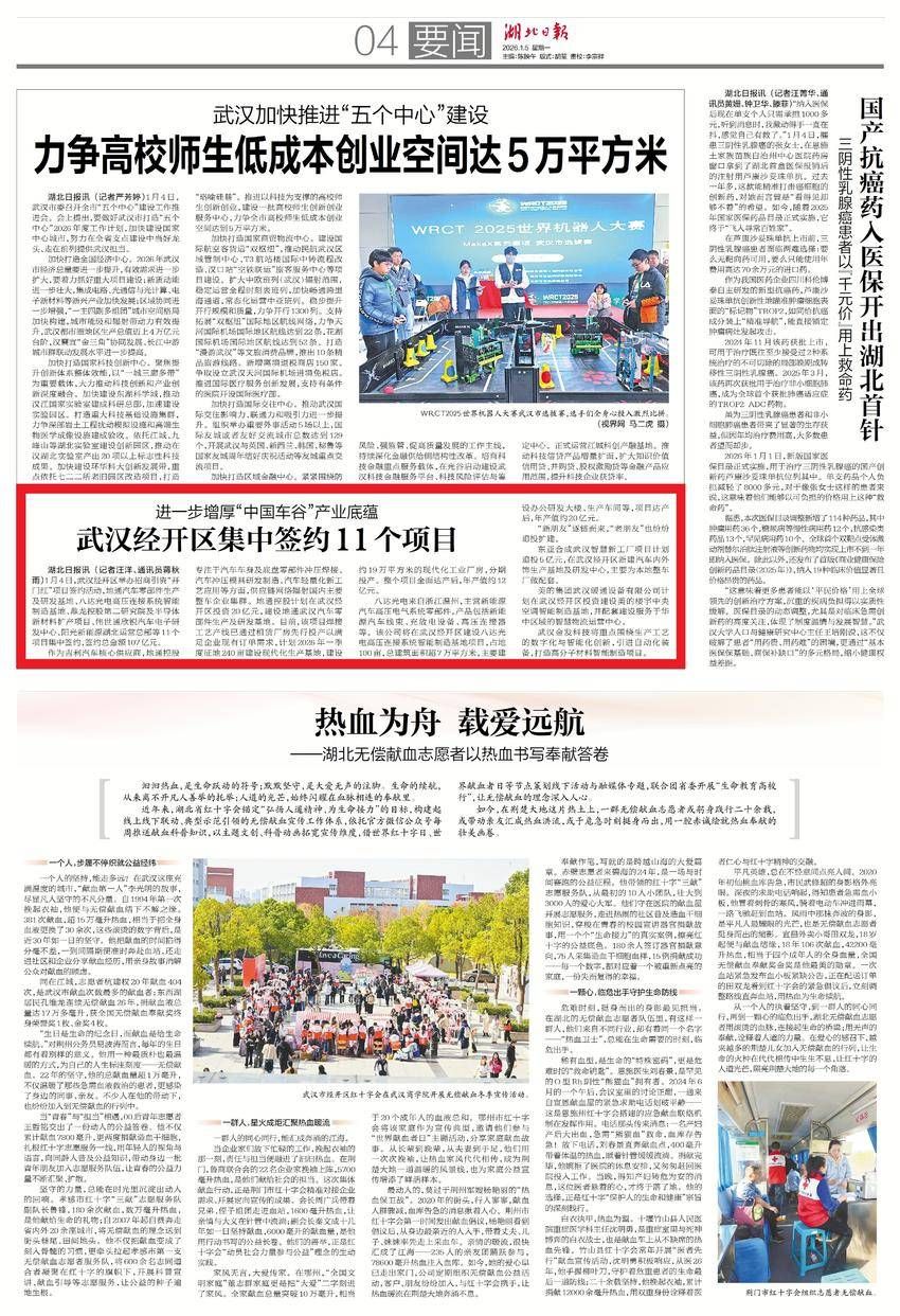 1月5日,湖北日?qǐng)?bào)要聞版報(bào)道:進(jìn)一步增厚“中國車谷”產(chǎn)業(yè)底蘊(yùn) 武漢經(jīng)開區(qū)集中簽約11個(gè)項(xiàng)目