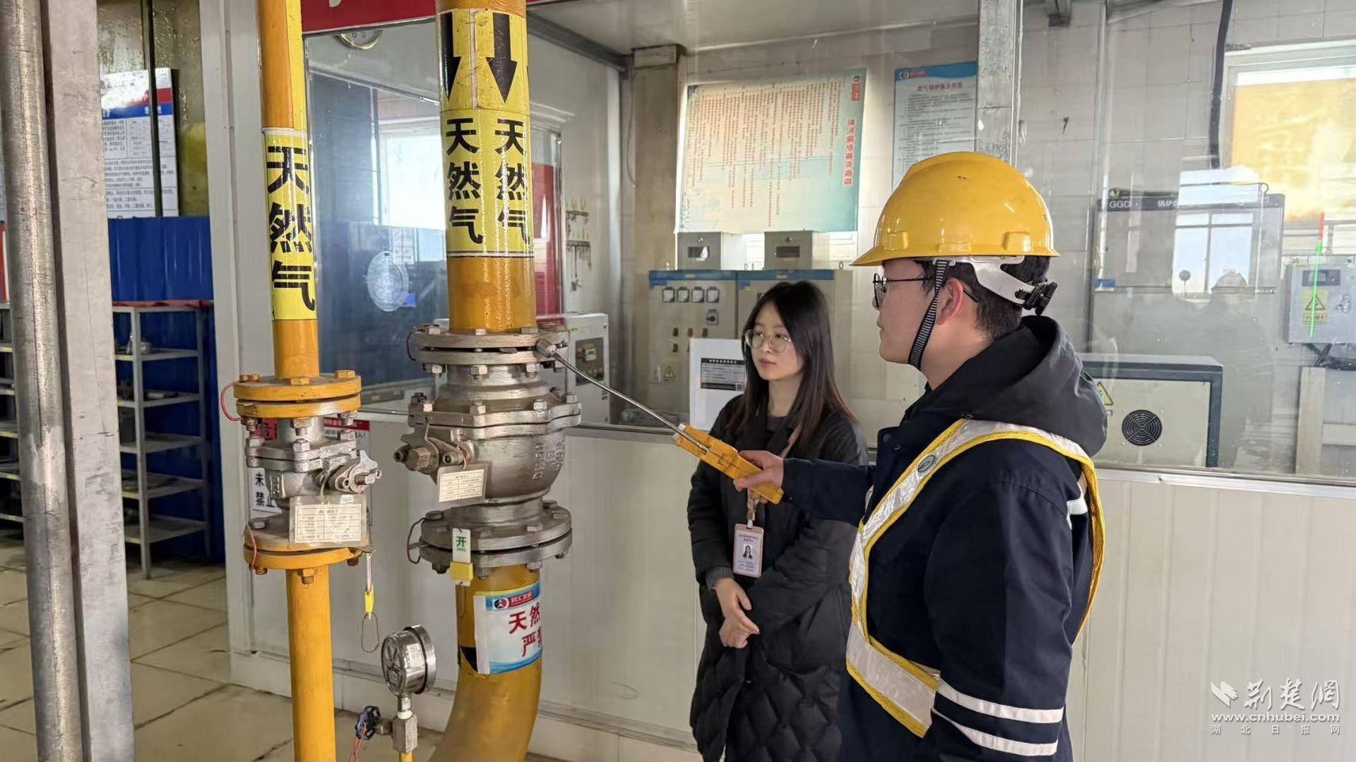 1月7日下午,在湖北武漢雙匯食品有限公司廠區(qū)內(nèi),燃?xì)夤芫W(wǎng)安檢員費(fèi)工一邊檢查天然氣閥門、調(diào)壓設(shè)備,一邊向企業(yè)負(fù)責(zé)人張寶軍叮囑道。