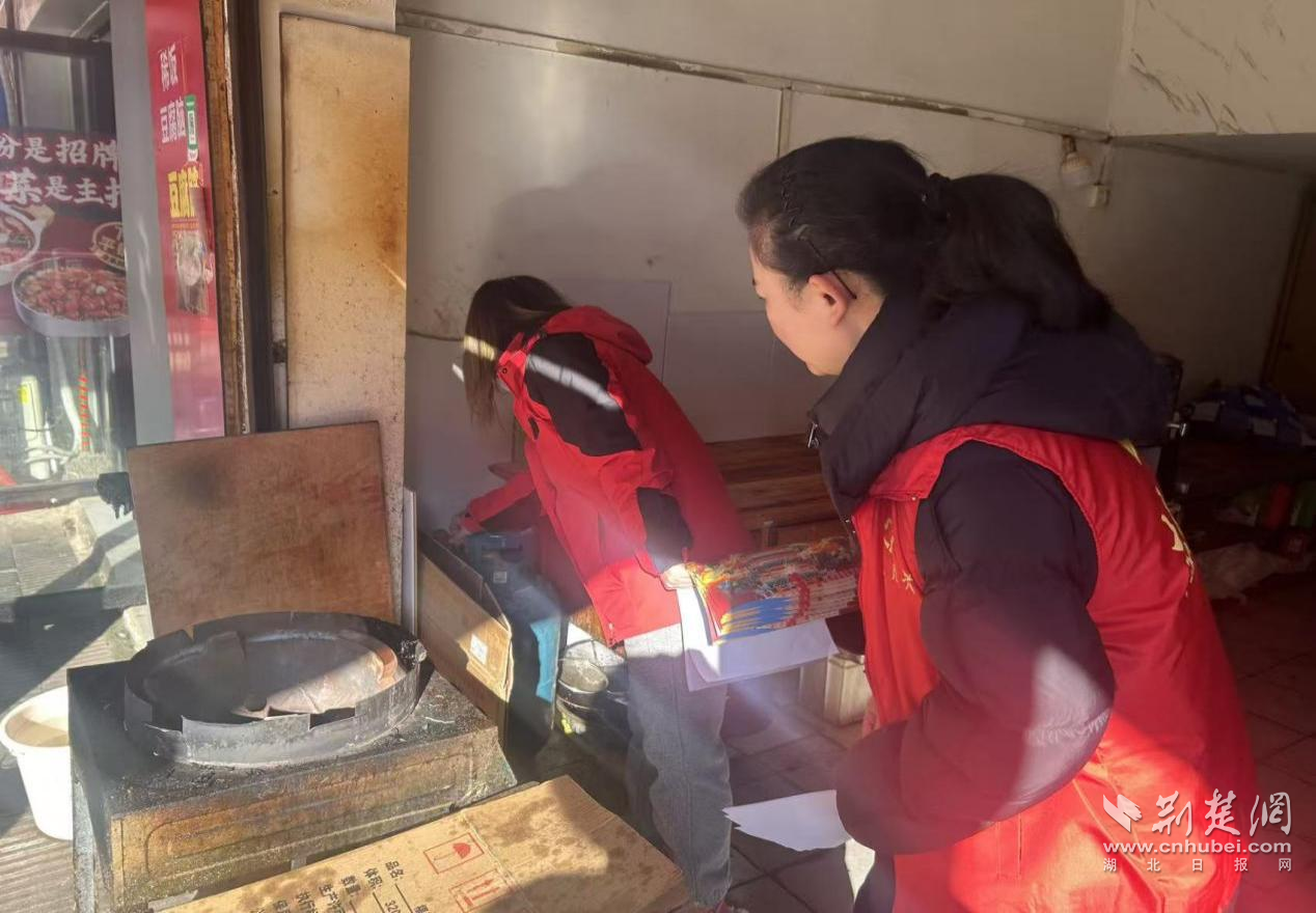 社區(qū)工作人員對(duì)商鋪進(jìn)行燃?xì)獍踩珯z查。通訊員供圖