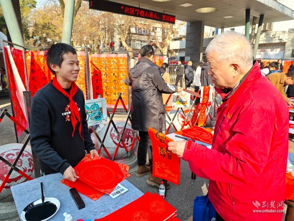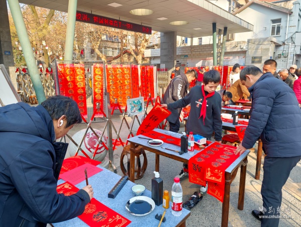 荊楚網(wǎng)(湖北日報(bào)網(wǎng))訊(通訊員 胡雅菲 許小玲)為弘揚(yáng)中華優(yōu)秀傳統(tǒng)文化,凝聚區(qū)域共建合力,助力武昌區(qū)創(chuàng)建“中國書法之鄉(xiāng)”,1月15日上午,由湖北省教育學(xué)會書法教育專業(yè)委員會主辦、武昌區(qū)黃鶴樓街道花堤社區(qū)聯(lián)合共建單位湖北省武昌實(shí)驗(yàn)小學(xué)承辦的“社區(qū)學(xué)校心連心,喜送福聯(lián)迎新春”公益活動(dòng),在實(shí)驗(yàn)小學(xué)門口拉開帷幕。
