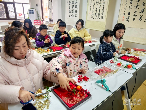 為迎接新春佳節(jié),傳承非遺手工技藝,“吉年添彩·手作年宵花畫框共創(chuàng)會(huì)”也在書房內(nèi)熱烈展開?;顒?dòng)以“筆墨書香里尋年味,非遺手作中傳文脈”為主題,吸引了眾多親子家庭與手工愛好者參與。
