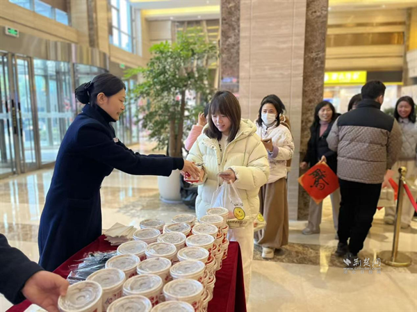 正午時分,另一旁的粥品區(qū)飄出濃郁香氣。12點整,工作人員和樓宇黨建指導員準時為排隊職工贈出臘八粥,糯米的綿軟、紅豆的香甜、紅棗的醇厚在碗中交融,“一碗香甜軟糯,暖胃更暖心”的貼心叮嚀格外溫情。剛領到粥的職工小孫捧著熱碗笑道:“這粥熬得特別地道,喝下去全身都暖了,感覺工作的疲憊都消了大半?!?/p>