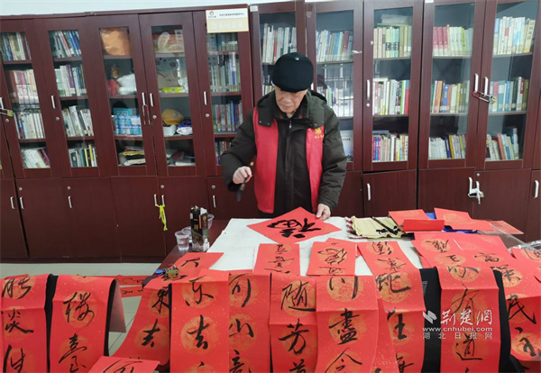 書(shū)法愛(ài)好者現(xiàn)場(chǎng)書(shū)寫春聯(lián)。 通訊員供圖