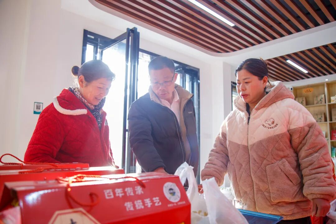 除了優(yōu)質(zhì)選品,在運(yùn)營模式上,基地還采用線上線下雙輪驅(qū)動(dòng)。線上以“祁家灣優(yōu)品”抖音直播間為主要陣地,組建了由5名村“兩委”干部構(gòu)成的直播團(tuán)隊(duì),定期開展直播帶貨,直播場景覆蓋生產(chǎn)現(xiàn)場等多種實(shí)地環(huán)境。線下則通過實(shí)體展示館進(jìn)行產(chǎn)品體驗(yàn)、零售以及面向企業(yè)與社區(qū)的團(tuán)購批發(fā)業(yè)務(wù),形成銷售閉環(huán)。