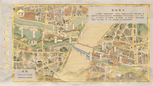 “江漢攬勝”主題游線以百年輪渡為紐帶,串聯(lián)起5A級(jí)黃鶴樓景區(qū)與4A級(jí)知音文化旅游區(qū),集亭、臺(tái)、樓、閣、殿五種傳統(tǒng)建筑形制于一體,生動(dòng)展現(xiàn)武漢“半城山水半城詩”的城市意象。游線自黃鶴樓啟程,途經(jīng)斗級(jí)營、戶部巷,乘輪渡橫渡長江,觀賞晴川燈會(huì),最終探訪知音殿、游覽古琴臺(tái),集萃武漢長江兩岸自然風(fēng)光、文化地標(biāo)與城市煙火氣,是自然與人文、傳統(tǒng)與現(xiàn)代交融的精品線路。