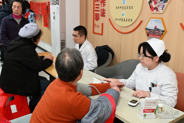 健康義診區(qū)里,武漢市第三醫(yī)院的醫(yī)護(hù)團(tuán)隊(duì)耐心為居民測(cè)量血壓、血糖,細(xì)致解答健康疑問(wèn),并給予個(gè)性化指導(dǎo)?!霸诩议T口就能享受到這么周到的醫(yī)療服務(wù),心里特別踏實(shí)?!本用窭畎⒁踢B連稱贊。