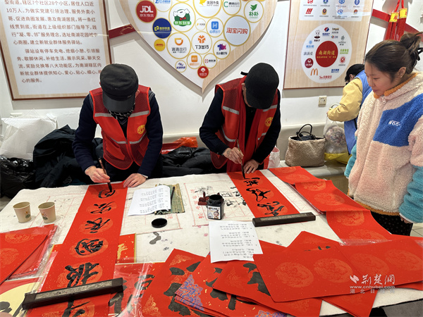 活動(dòng)現(xiàn)場(chǎng)張燈結(jié)彩,福字、春聯(lián)相映成趣,處處洋溢著喜慶祥和的節(jié)日氣息。書法志愿者現(xiàn)場(chǎng)揮毫潑墨,一筆一畫寫下新春祝福,一幅幅寓意吉祥的春聯(lián)與福字深受大家喜愛,戶外勞動(dòng)者們駐足欣賞、挑選心儀對(duì)聯(lián),在墨香中提前感受春節(jié)的儀式感。