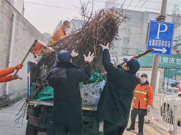 據悉,此次重點清理的國盛路側路,是中鐵十四局建設地鐵10號線時為方便周邊居民及顧客通行而開辟的臨時通道。該路段連接國盛路與和平大道,緊鄰金鑫家居、和平大世界、居然之家三大家具市場,平日車流人流量較大。由于樹木枝葉長期未經修剪,加上部分大件垃圾和廢舊廣告招牌未及時清理,不僅影響市容美觀,也存在一定安全隱患。